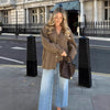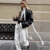 Oversized Kunstlederjacke für Damen mit Kragen und Dekobändern