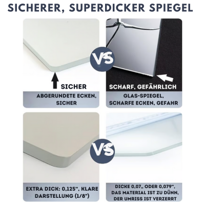 Sicher und bruchsicher: Der Spiegel aus hochwertigem Acryl ist bruchsicher und sorgt so für Sicherheit, besonders in Haushalten mit Kindern und Haustieren.