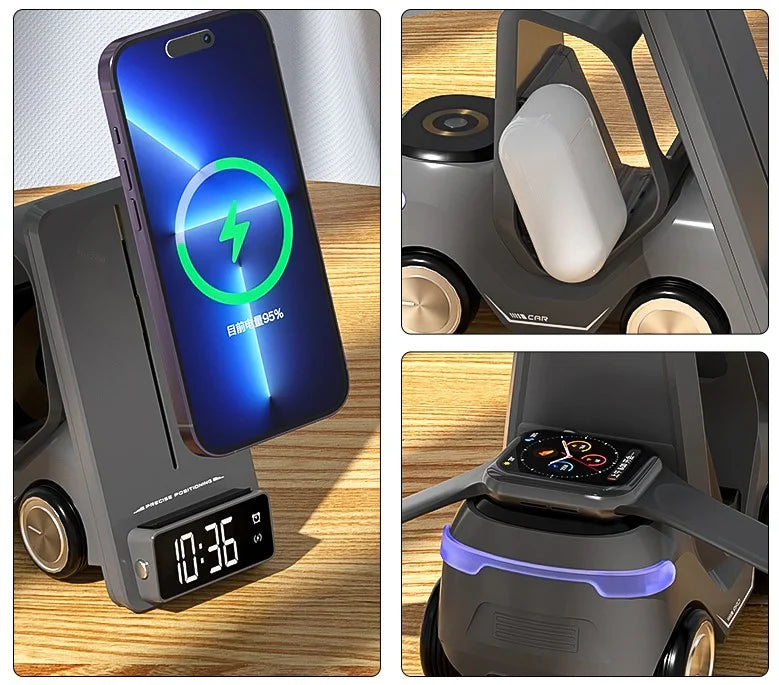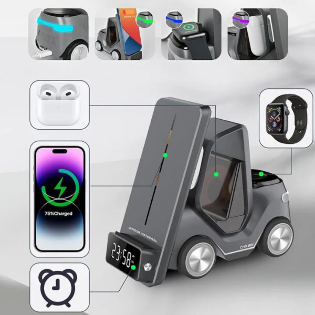 Stellen Sie sich vor, nie wieder über verhedderte Kabel oder leere Akkus nachdenken zu müssen. Heben Sie Ihr Ladeerlebnis mit ForkCharge auf die nächste Stufe – dem ultimativen 3-in-1 Wireless Charger, der leistungsstark und stilvoll ist. Perfekt für alle, die in ihrem Tech-Alltag Geschwindigkeit, Effizienz und einen Hauch von Flair verlangen.