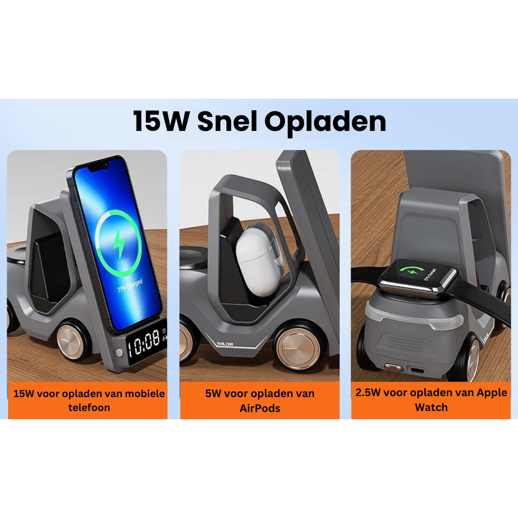 • Design: Gabelstapler-förmig, Qi-zertifiziertes kabelloses Laden