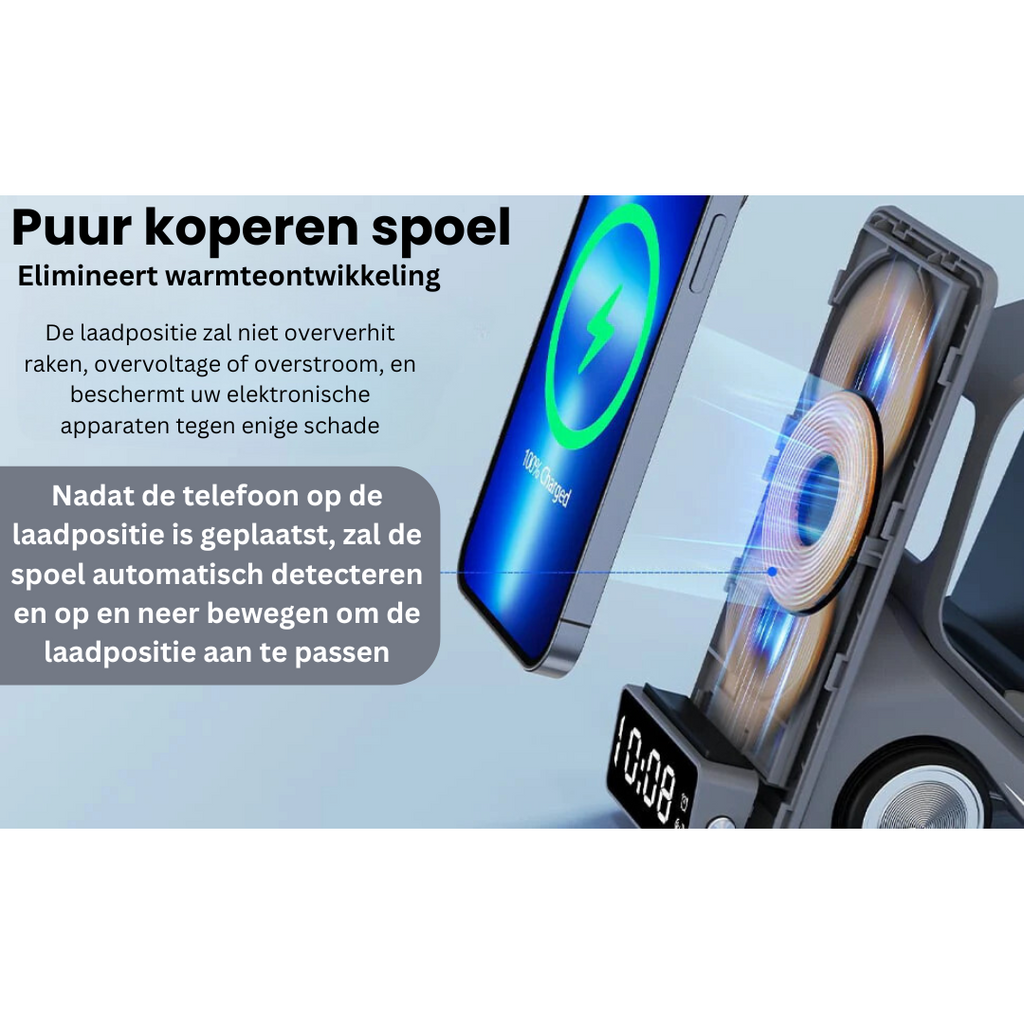 • Müheloses Laden: Verabschieden Sie sich von unordentlichen Kabeln und begrüßen Sie nahtloses drahtloses Laden für all Ihre Geräte auf einmal.