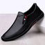 Legere Herren-Loafer aus Leder, geeignet für den ganzjährigen Gebrauch. Merkmale: poliertes Obermaterial aus Leder, gepolsterte Innensohle, Textilfutter und rutschfeste Gummisohle. Slip-On-Konstruktion mit seitlichen Gummieinsätzen und matter schwarzer Oberfläche. Ideal für den täglichen Einsatz – vom Büro bis zum Freizeitbereich.
