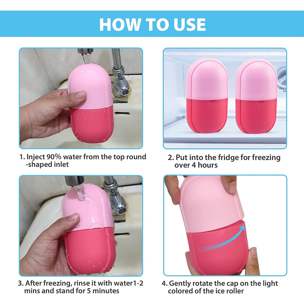 Er besteht aus zwei Teilen und hat oben ein Loch, damit man ihn mit Wasser füllen kann. Sobald das Eis gefroren ist, können Sie einfach die Kappe abnehmen und das Eis auf Ihrer Haut abreiben. Erhalten Sie im Handumdrehen eine glatte und klare Haut!