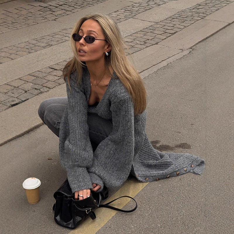 Dieser Langarm-Cardigan für Damen kombiniert Eleganz mit Vielseitigkeit und stellt eine perfekte Ergänzung für jede Garderobe dar. Mit markanten Knopfdetails und einem figurbetonten Schnitt lässt er sich problemlos zu vielen Outfits kombinieren – ob im Büro oder bei einem Treffen mit Freunden. Dieser Cardigan bietet einen modernen Look und eine passgenaue Form.
