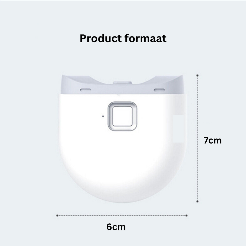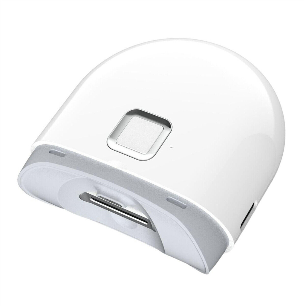 Electric nail care device suitable for all ages, including children. Features one-button operation, integrated LED lighting, and a built-in vacuum system for hygienic use. Rechargeable via USB Type-C with a compact, ergonomic design. Designed for care at home or on the go.