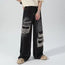 Weit geschnittene Herrenjeans aus schwerem Baumwollstoff. Für den ganzjährigen Einsatz mit lockerem Sitz konzipiert. Mit starken Rissen, offenen Kanten und ausgewaschener schwarzer Optik. Geeignet für lässige Streetwear und den urbanen Alltagsstil.