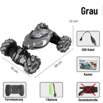 Dieser maßstabsgetreue Rennwagen bietet alle möglichen neuen Stunts wie Seitendriften, 360°-Drehung, seitliches Fahren, Überschlag, Allradantrieb und mehr!