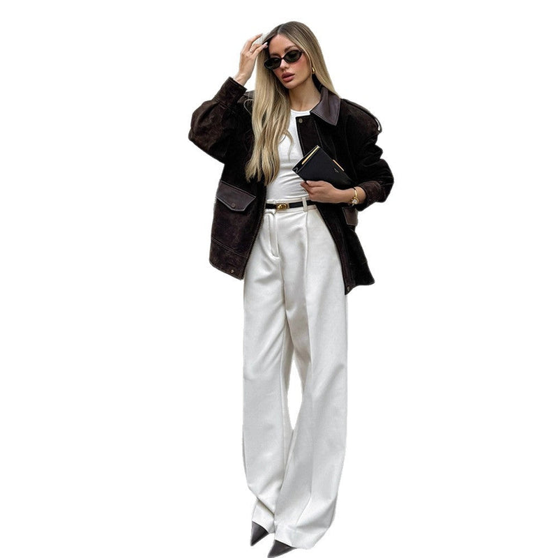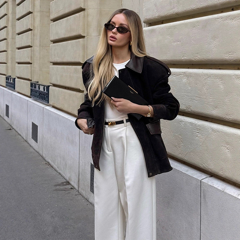 Dieser Faux-Ledermantel mit klassischem Kragen für Damen vereint eine klare Form mit einem modernen Erscheinungsbild. Er wurde für all jene entworfen, die Wert auf einen gepflegten Stil legen und eine Jacke mit strukturierter Oberfläche bevorzugen. Durch seinen geraden Schnitt und die dezente Länge bietet er eine ausgewogene Passform, die zu verschiedenen Outfits passt.