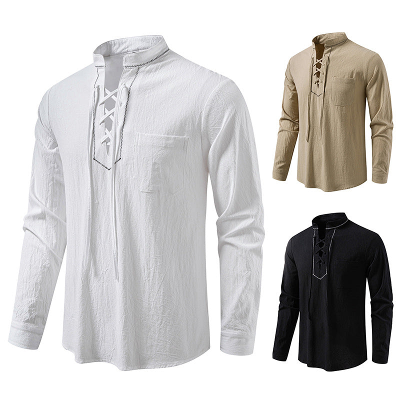 Warum unser Langarmhemd mit Stehkragen und Schnürung für Herren:
