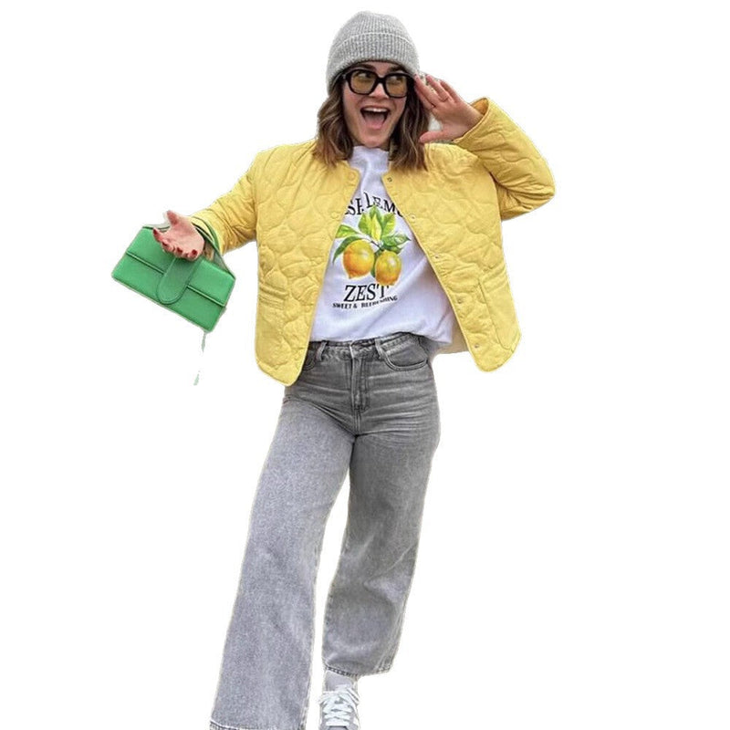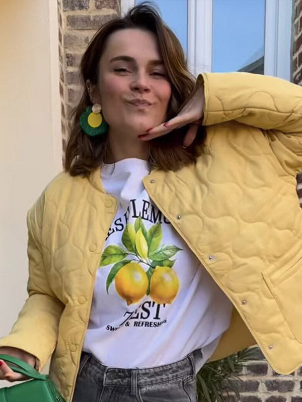 Diese leichte Steppjacke mit modernem Muster für Damen verbindet alltagstaugliche Funktion mit einer klaren, definierten Form. Das strukturierte Obermaterial und die dezente Steppung verleihen der Jacke eine ansprechende Optik, während der durchdachte Schnitt für eine ausgewogene Passform sorgt. Ideal für die Übergangszeit – geeignet für Frauen, die eine vielseitige Jacke mit gepflegtem Erscheinungsbild suchen.