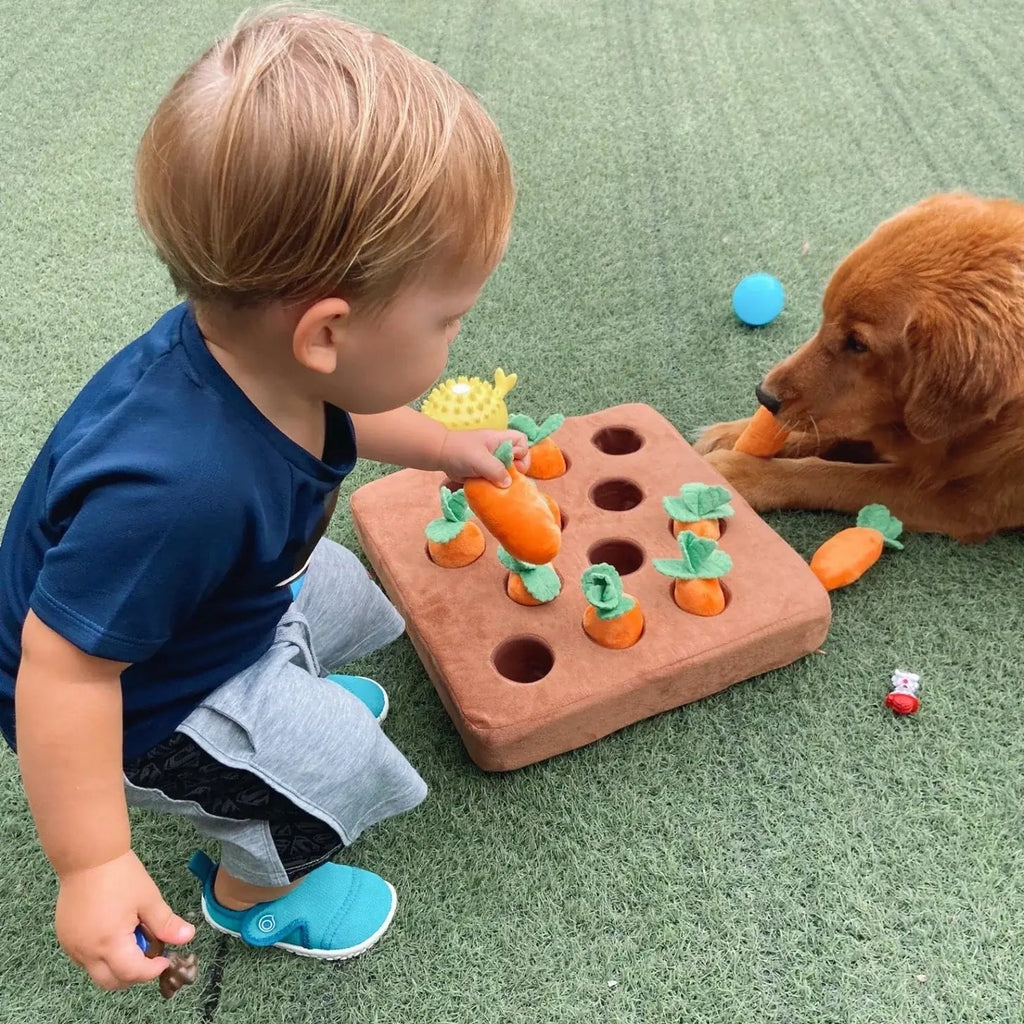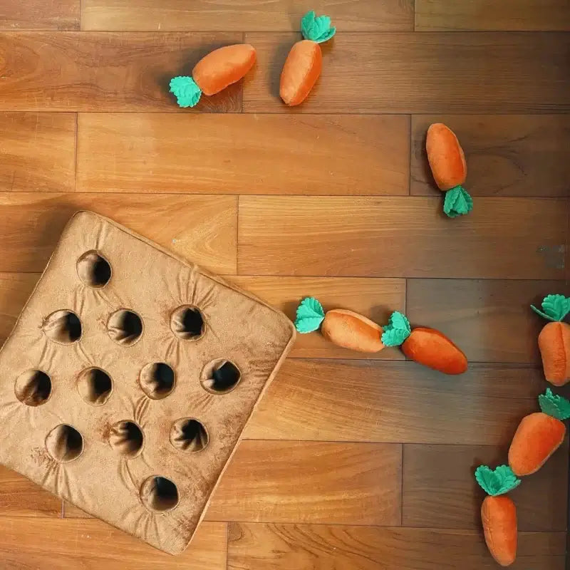 Verstreuen und verstecken Sie Trockenfutter oder Leckerlis im LillyBelle™ Hund Karotte Patch und beobachten Sie, wie Ihr Hund versucht, es zu erschnüffeln.