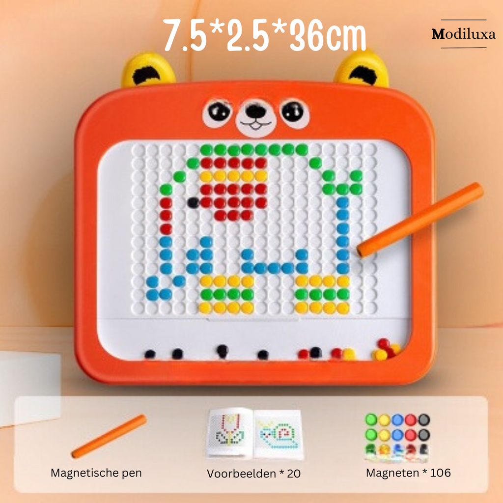 Mit jeder MagiDraw™ Magnetic Drawing Board erhalten Sie 1 Zeichentafel, 20 Beispielbilder und satte 106 Magnete. All das wird Ihre Kinder dazu inspirieren, ihre eigenen Meisterwerke zu schaffen und ihre Freude zu wecken.