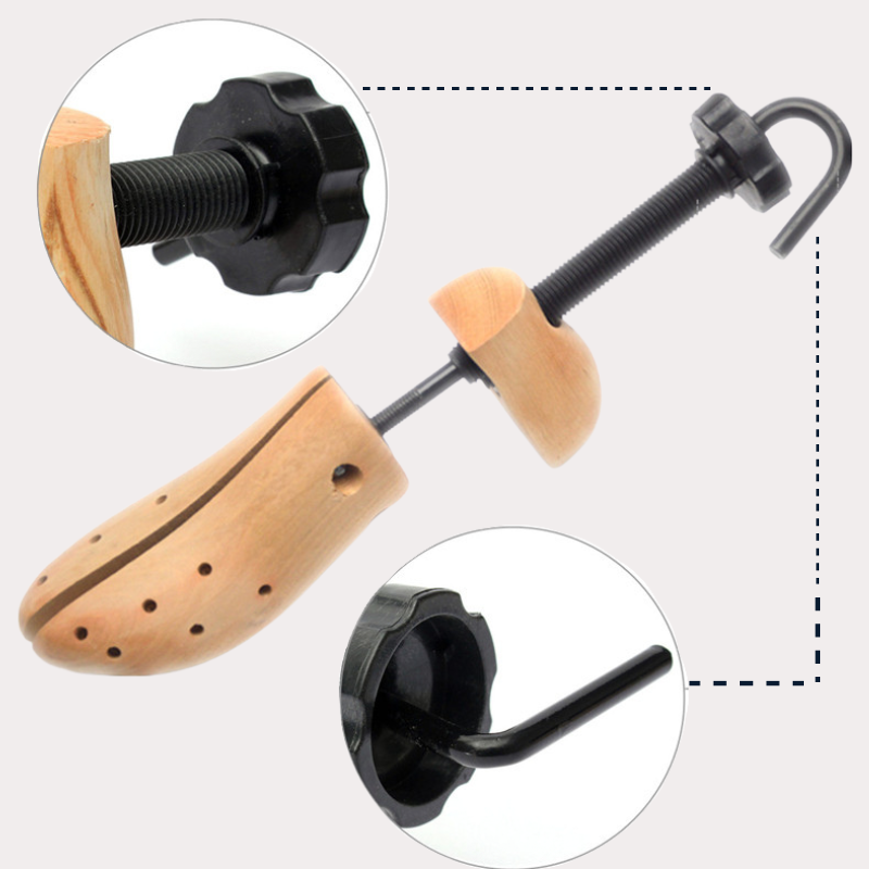 Präzise gefertigt, formt dieser Holzschuhdehner Ihr Schuhwerk exakt nach Ihrer Größe, beseitigt jegliche Bedenken hinsichtlich unangenehmer Breiten oder Längen. Für alle Arten von Schuhen geeignet, ist es Ihre All-in-One-Lösung für die perfekte Passform.