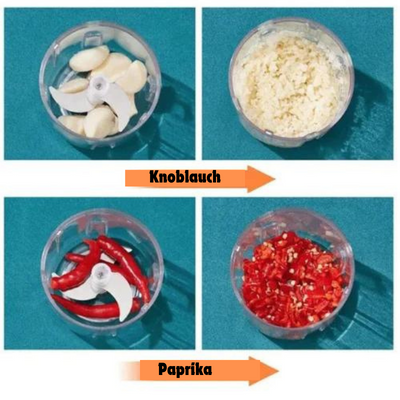 Erleben Sie die Einfachheit der Einhandbedienung mit unserem Mini-Food-Prozessor. Das One-Touch-Design verwandelt Lebensmittel oder Zutaten mühelos in perfekt gehackte Köstlichkeiten.