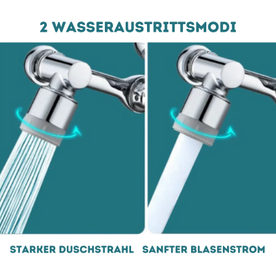 Stellen Sie sich vor, Sie könnten Ihren Wasserstrahl mühelos in jede gewünschte Richtung lenken, dank der bemerkenswerten 1080-Grad-Drehung dieses Wasserhahns. Kein Kampf mehr, um die kniffligen Ecken oder ungeschickten Winkel zu erreichen, Sie haben die volle Kontrolle.