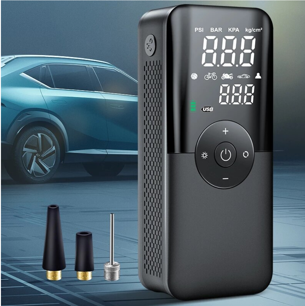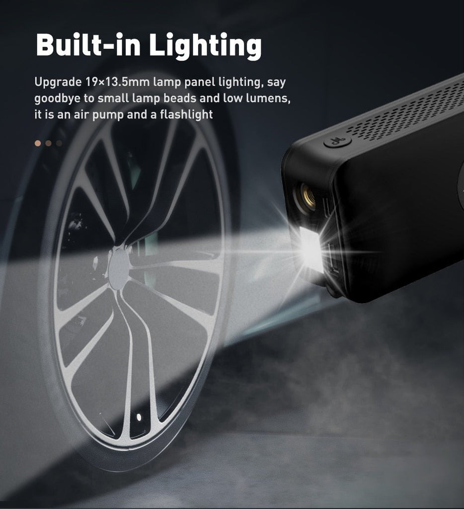 Das eingebaute Licht hilft, die Dunkelheit zu erhellen und die Reifendüse bei der Montage zu platzieren. Halten Sie die Taste gedrückt, um die LED-Taschenlampe zum Aufpumpen im Dunkeln oder für Notfälle einzuschalten.