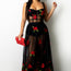 1 x Rouge™ Besticktes Kleid mit roten Rosen | Durchsichtiges Maxikleid