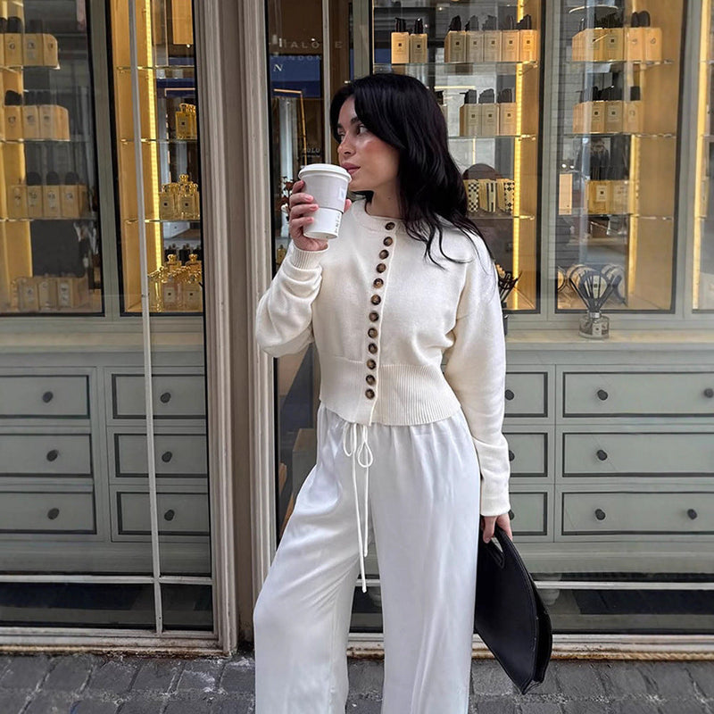 Dieser Strickpullover mit Knopfleiste für Damen vereint eine strukturierte Oberfläche mit einer formbetonten Passform. Er ist ideal für alle, die ein vielseitig kombinierbares Kleidungsstück mit dezenten Details suchen. Das Material zeigt eine gleichmäßige Struktur und eignet sich für unterschiedliche Jahreszeiten.